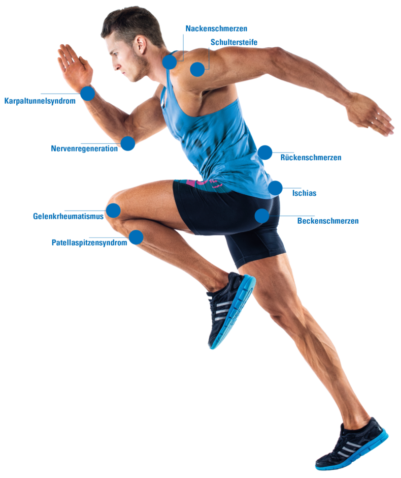 Schmerz- oder Behandlungszonen werden zunächst getastet. Die Behandlung wird mit der Ausgangsleistung verabreicht. Achten Sie darauf, dass die gesamte Behandlungszone behandelt wird.